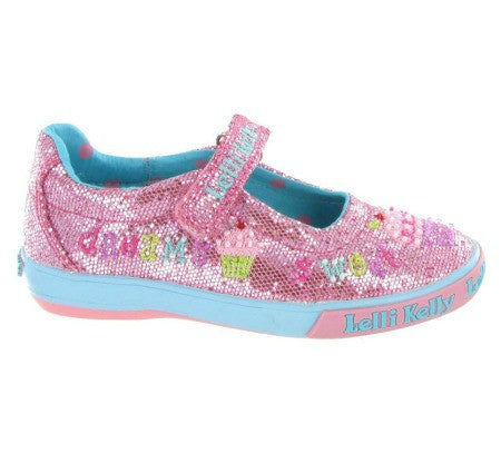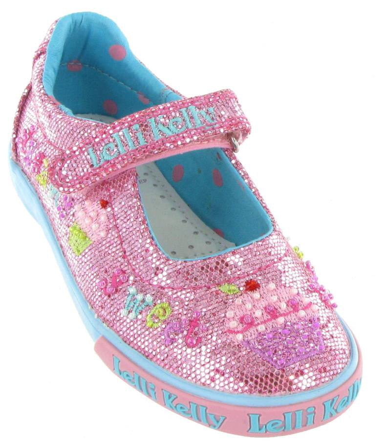 A totally girly canvas shoe covered in pink glitter and sparkles, Lelli Kelly LK4150 has little cute embroidered cupcakes on it and could be a lovely addition to any little girls shoe collection. Featuring a velcro strap and removeable leather insole. Also available in white or silver.