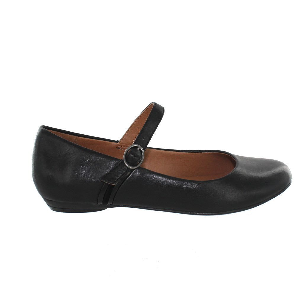 A sleek and slylish slimline pump with a single buckled strap. This cute little shoe is ideal for school, college, work, wherever you want to take it! In soft black leather with a cushioned comfort insole.