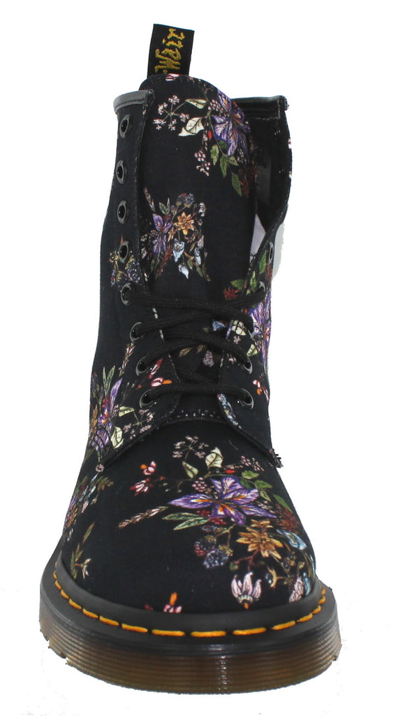 Beautiful Dr Marten ladies boots in black floral fabric. A gorgeous ladies boots in a pretty floral pattern on a black canvas background, a break from the norm! Classic styling shows through in the comfort sole and lacing but dare you wear and be different!?