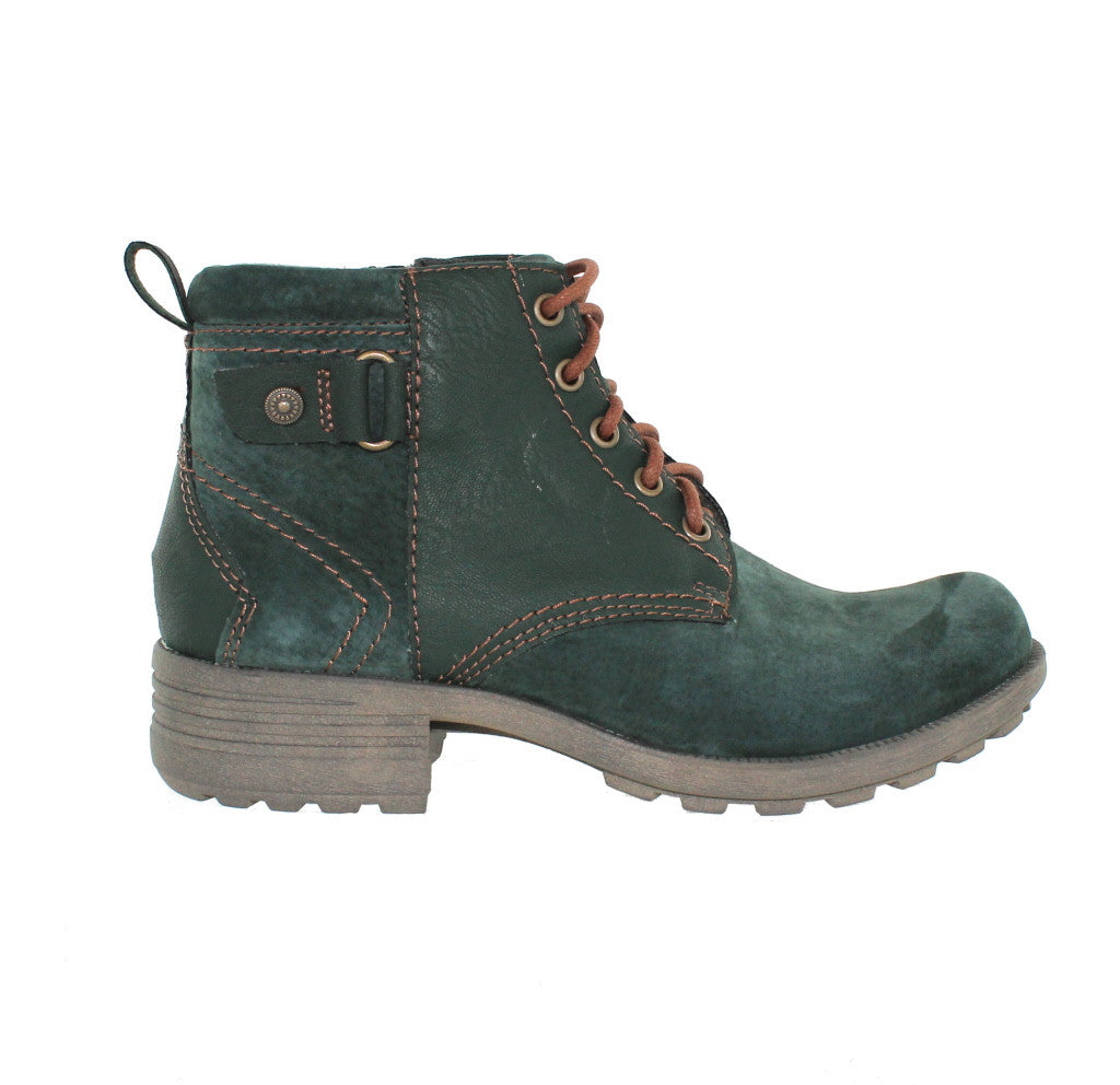 This lace fronted boot by Earth Spirit has a work boot look to it which sets it just the right side of funky and on trend. It has side zip access and is a mixture of green leather and man-made materials in patches featuring contrasting coloured stitch detail and a riveted tab. A versatile boot ready to slip into a wardrobe of virtually any age!
