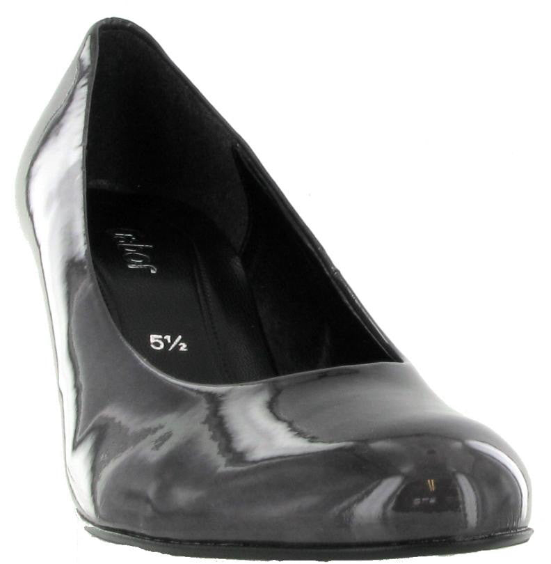 Gabor Lavender in grey patent is the perfect match for any oufit from your working day right through an evening out. Also available in cherry red patent, smooth black leather or patent, either will do and with a heel of less than 5cm you needn't worry!
