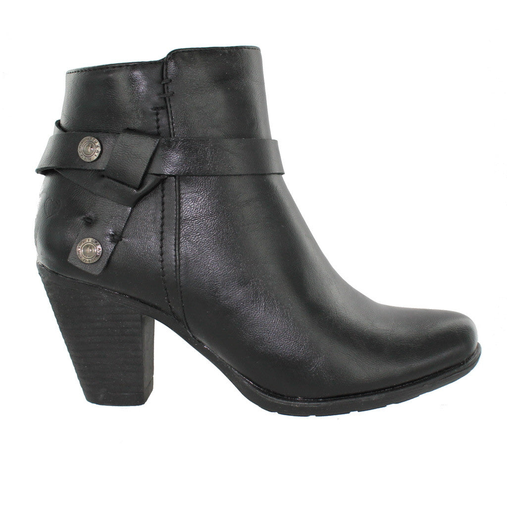 Mango by Heavenly Feet, a cute little ankle boot with a 3inch heel and plain front with riveted straps around the ankle. With inside leg zip access this leather look boot is a must have this season, dress it up or wear it casual, in black or brown, the choices are yours!