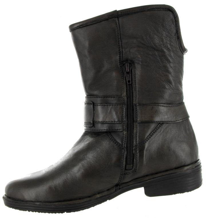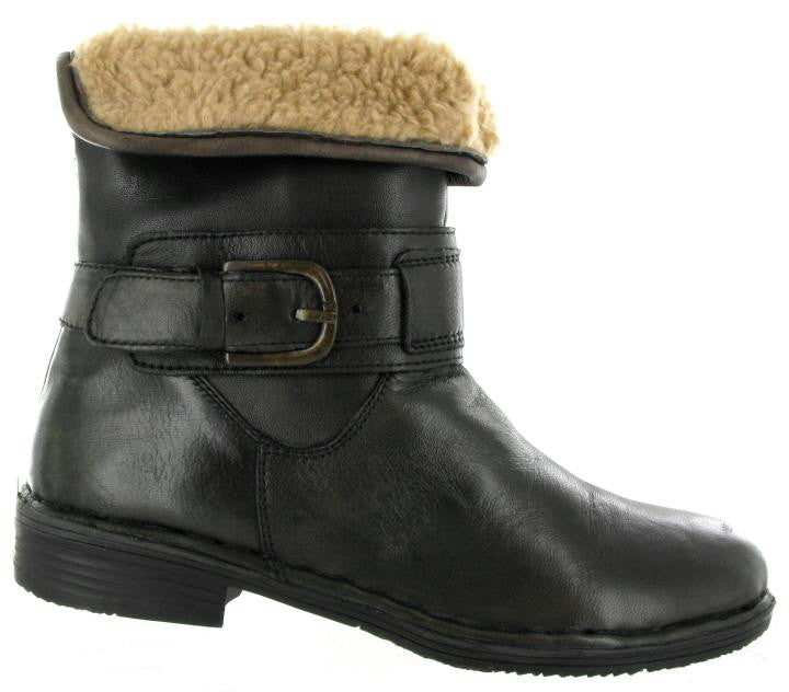 A luxuriously soft leather ankle boot with a fleece like lining. Lotus Matterhorn gives the option of wearing the top up straight or folded down showing the warm lining and giving it another look altogether. There is a half zip on the inside for ease slipping on and off and the detail buckled strap adds to the appeal of this brown leather boot.