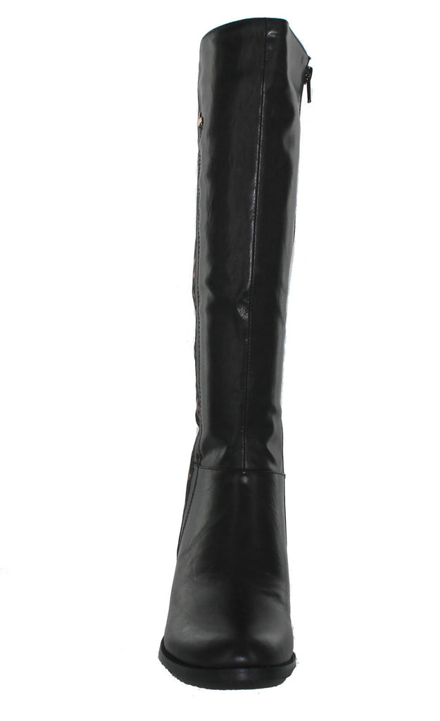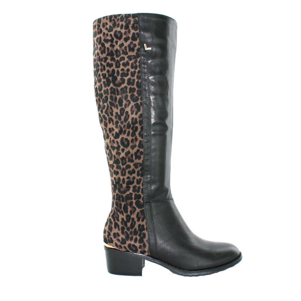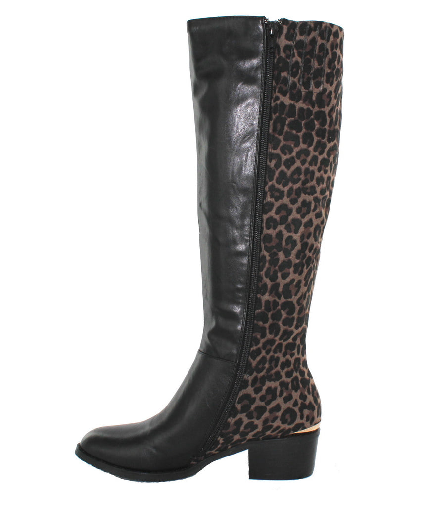 This beautiful knee high boot by Lunar features an animal print panel down the back, gold effect 'L' to the side and detailing around the 2 inch block heel. With zip access on the inside leg this boot is both practical and comfortable and can be worn with skinny jeans or leggings or skirts and woolly knits.