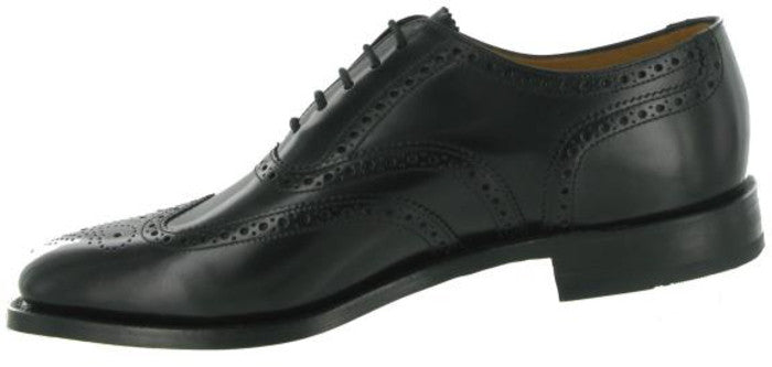 Mens Black leather full brogue shoe with Goodyear welted leather soles.