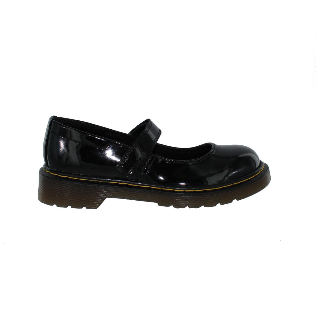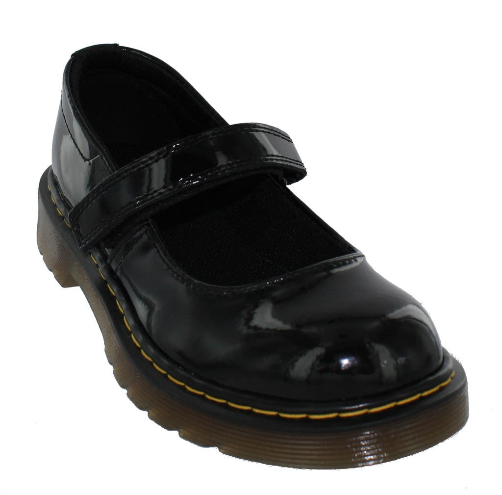 Maccy is a hard wearing Mary Jane style shoe by Dr Martens, this black patent style carries all the traits of being a DM shoe but is still feminine and pretty at the same time. This shoe features a single touch close strap for adjustability and comfort.